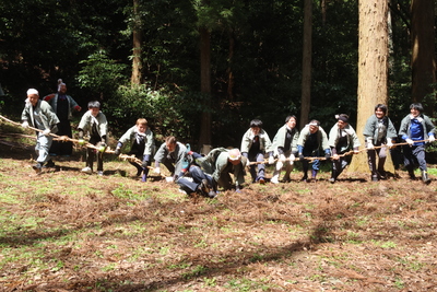 4日 午前8時30分頃 春日神社出発 布施地区山中 帯裁ち
