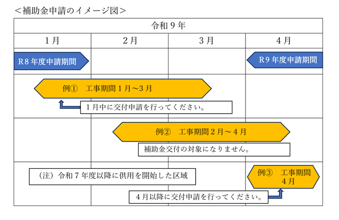 (注)年度をまたいだ工事については、補助金の対象となりませんのでご注意ください。