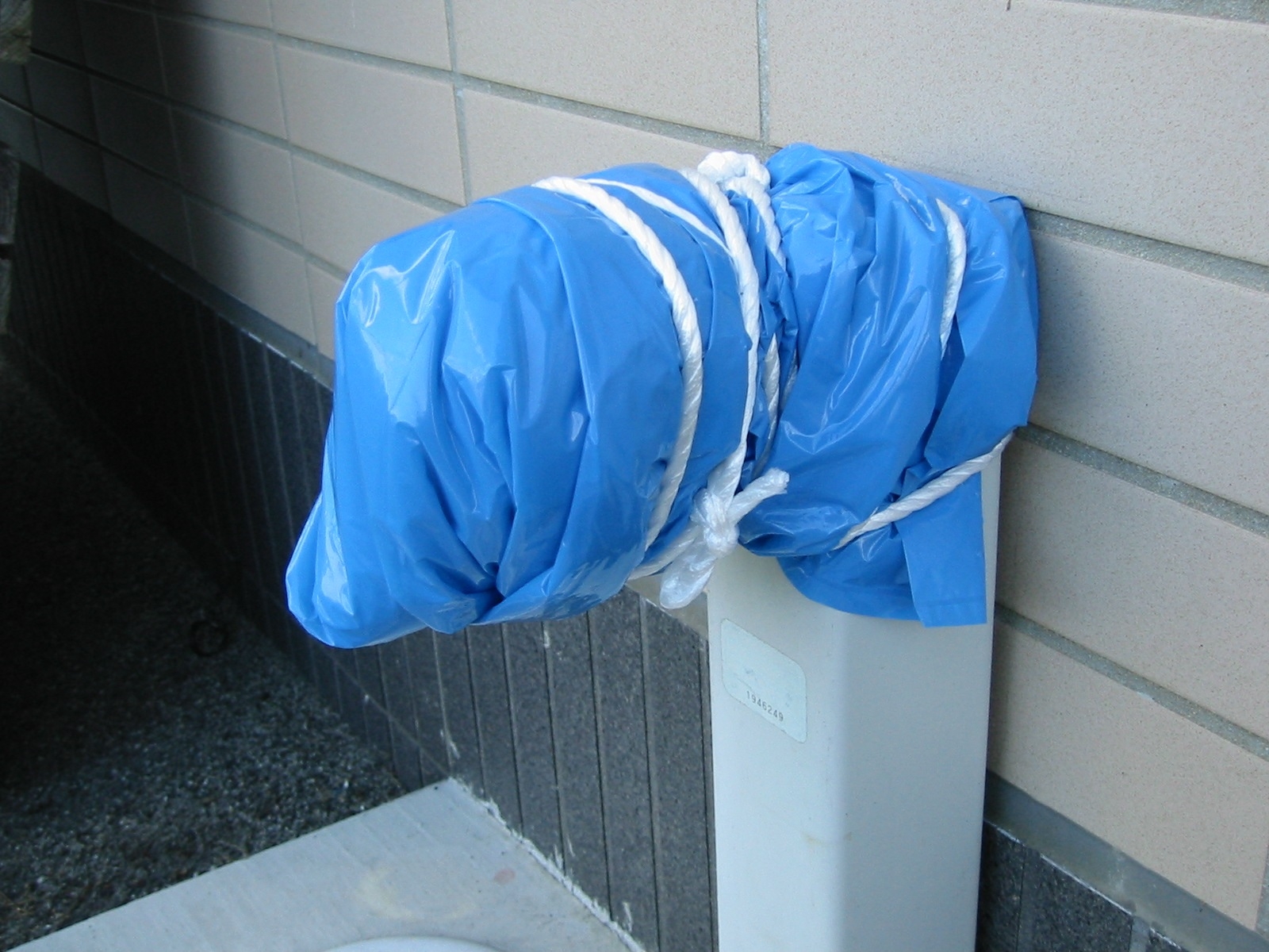 その上からビニールなどを巻き、雨や雪で濡れないようにするとさらに効果的です。