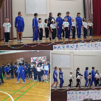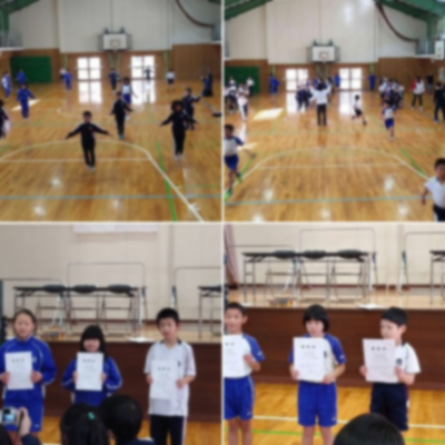 昨日の縄跳び大会の様子です。みんなそれぞれよくがんばって挑戦していましたよ。各種目のチャンピオン戦は最後まで残って戦う人たちに、大きな声援が飛んでいました。デモンストレーションでも、いろいろな技を見せてくれた人たちはかっこ良かったです。応援に来てくださった保護者の皆さま、温かい拍手や声援ありがとうございました。来ていたALTの方が、「アメイジング!(びっくり、すごい。)」と、ずっと拍手してくれていましたよ。