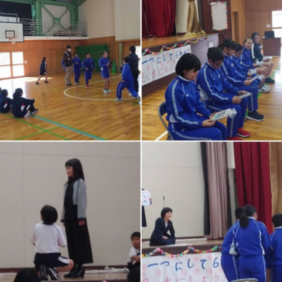 遅くなりました。1日の6年生を送る会の様子です。5年生が企画して、4年生が手伝って、1~3年生がそれぞれゲームの企画や、お手紙や、プレゼントを用意して、1~5年生が更にそれぞれ出し物を用意して、送る会が行われました。踊りあり、劇あり、歌あり、とっても楽しい時間を過ごしました。6年生はとても楽しんでいたようです。卒業式まで、あと二週間足らずになりました。それぞれに良い思い出を刻んでもらいたいものです。