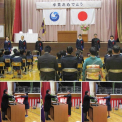 天気も何とか回復し、6名の卒業式が今日、今年の6年生らしく、さわやかに行われました。在校生たちも、お世話になった6年生をしっかり送ろうと、とても気持ちのこもった送る言葉や歌を贈ってくれましたし、6年生は一人一人がそれぞれに違った自分の想いを語ってくれました。何でもがんばってきた6名の中学校生活が充実したものになりますよう応援しています。卒業おめでとうございます。