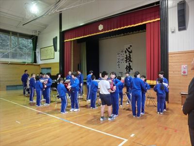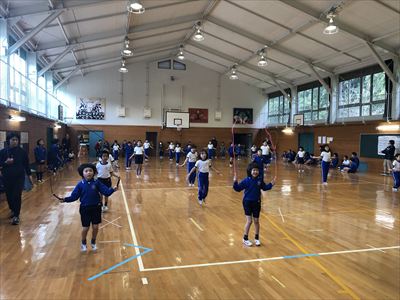 中学校と合同の地域公開参観日に合わせて、なわとび大会を行いました。子供達は、優勝を目指して、自分の出る種目を休み時間や体育の時間にも練習をする姿が多く見られました。期間は短かったものの、成果が見られた短縄跳びでした。