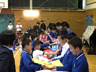 当日の出し物も、各学年工夫を凝らした楽しいものとなりました。短い時間でしたが、6年生へ感謝の気持ちを伝えることができました。