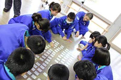 全校で百人一首大会を行い,他学年との交流をすることができました。全校6チームに分かれ真剣勝負が繰り広げられました。