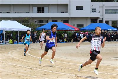 全隠岐陸上競技大会に参加しました。約一ヶ月の練習を通し、選手団と応援団がそれぞれに士気を高め、当日は全校生徒が一体となり、チーム都万中として戦うことができました。