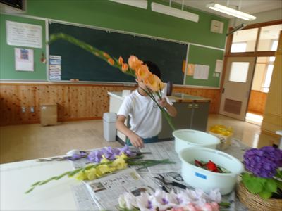 1学期には、大峰山に出かけて虫探しをしたり、竹の釣り竿を作って釣りをしたり、フラワーアレンジメントに挑戦したりしました。普段、近くにあるものでも、意識しなければ気づかないことも多くあります。子どもたちはクラブ活動を通して、自分たちのふるさとに目を向け、新たな発見をしていきます。