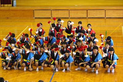 午前の部では、全校創作銭太鼓発表、ステージイベント、各員会による模擬店を行いました。午後の部の体育祭では多くの保護者、地域の方々に競技に参加していただきスローガンの「みんなで熱盛」を達成でき、全校生徒が仲良くなる学園祭になりました。
