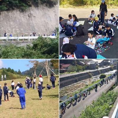 全校銚子ダムピクニック、よい天気の中、無事終わりました。どの子もよく歩いて予定より早く寺の前公園に到着。たっぷり縦割り班ごとに楽しそうに遊びました。