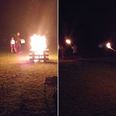 キャンプファイヤーも楽しんで終わりました。これで一日目無事終了して、就寝時刻になりました。黒川お父さん、ヨット指導からファイヤーの最後まで付き合って下さいました。途中様子を見に来て下さった保護者の皆さんもありがとうございました。みんな元気で夕食のカレーも美味しく、全部平らげましたよ。そうそう、暗くなりかけたら、男子全員トイレに向かったのも面白かったです。今日のヨットはずいぶん上手になり、明日は一人で乗ると言っている人も出てきました。
