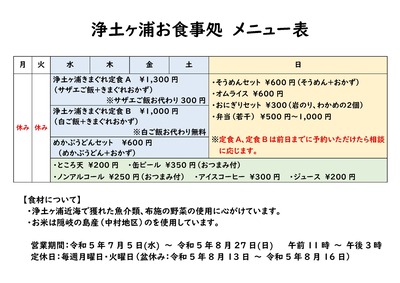 浄土ケ浦お食事処 夏期営業