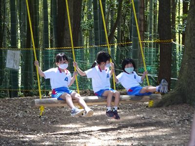 遊具の劣化に伴い、使用を中止していた有木の森が改修工事によりリニューアルされ再開しました。6月4日には、5.6年生によるオープニングセレモニーが行われ、みんなで盛大に再開を祝いました。ターザンロープ、3人乗りブランコ、巨大ハンモックなど、子ども達のリクエストをもとに設置された遊具は連日大盛況。休み時間のたびに有木の森に駆け込む子どもたちの姿が見られます。有木小ならではの、自慢の有木の森。これからも、癒しと憩いのスポットとして、子ども達を優しく、温かく包み込んでくれることと思います。
