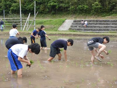 今後、子ども達は、稲かりまでの米づくりを体験します。この活動を通して、地域の方の思いに触れ、米づくりの工夫や苦労を知ることで、有木の自然を守り、お米を大切に食べようとする気持ちを育んでいけるようにしたいと思います。