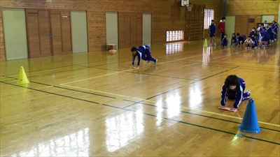 本校では毎週金曜日に校庭で全校リレーを行っています。しかし、冬になると天気が悪く、校庭でリレーができないことが多く、今年から体育館でのぞうきんがけリレーを取り入れました。最初は戸惑っていたものの、子どもたちはきれいにぞうきんがけをしていました。
