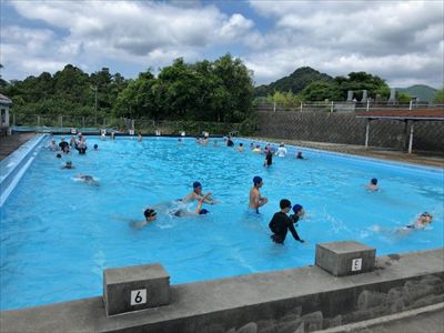 7月に入り、子どもたちの楽しみにしていた水泳学習が始まりました。水泳が苦手な子もいるようですが、水泳の授業になると子どもたちの表情はとても明るくなっています。楽しみながらも真剣に学習することができました。水泳の授業では、低学年は水に慣れることや伏し浮き、中学年はけのびやばた足で進むこと、高学年になるとクロールや平泳ぎを学習しました。