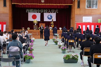 4月9日、22名の新入生を迎え、令和3年度がスタートしました。今年度は3年生1学級(35名)、2年生2学級(36名)、1年生1学級の全校生徒計93名となります。