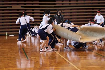 6月25日はレインボーアリーナで体育祭を行いました。三密を避けるため、生徒が知恵を出し合い、みんな笑顔になることができる楽しい1日にすることができました。短い準備期間でしたが、3年生が中心となり、全校生徒が明るく、団結できる体育祭に作り上げました。