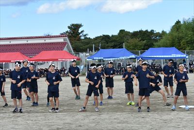 オープニングでは、本校伝統の鼓笛隊によるマーチングが披露され、華やかなスタートとなりました。各学年での種目や玉入れで、笑顔で精一杯走ったり投げたりする子どもたちの顔が輝いていました。また、4~6年生による応援タイムでは、工夫が凝らされた寸劇やダンスが披露され、会場が笑顔に包まれました。