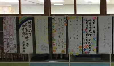 「世界人権デー」に合わせて、校内人権週間を設け、各クラスで人権標語を考えました。クラスごとに大切にしたいことを考えて、児童朝礼で発表したり、ポスターを掲示したりしました。