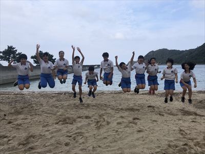 10月1日、秋晴れの中で1~4年生が遠足に出かけました。1・2年生は寺の前公園に行きました。楽しい遊具で遊んだり、どんぐりや栗などの秋見つけをしたりして楽しみました。3・4年生は隠岐自然館へ行きました。入館すると展示物や巨大モニターに興味津々の子どもたち。職員の方に教えてもらいながら、黒曜石を使って新聞紙を切ってみたり、オオサンショウウオに餌をやらせてもらったりと貴重な体験をしました。10月8日、5・6年生は中村海水浴場を目指して徒歩旅行に出かけました。国分寺やかぶら杉など隠岐の文化と自然を感じながら、声を掛け合い長い道のりを歩き切りました。