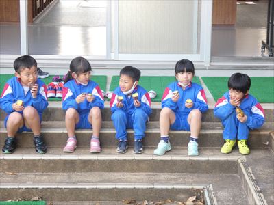 11月15日、1・2年生が5月から育ててきたサツマイモを収穫し、焼き芋をしました。4時間目に芋を洗って新聞紙で包み、さらにその上からアルミホイルで包みました。新聞紙が見えないようにアルミホイルで包むのは子どもたちとっては少し難しかったようですが、何度か巻き直しながら上手に巻くことができました。そして5時間目、焼きたての芋はホカホカでとてもいい匂い!半分に折ると、黄色いきれいな色が出てきました。甘くておいしい焼き芋にみんな大満足でした。沢山収穫したので、他の学年にもお裾分けしました。