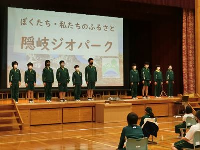 11月12日に、きたっこ発表会を行いました。今年度もオープニングは、毎年恒例となっている「きたっこ太鼓」。3・4年生の発表は、「ズッコケクイズ隊」。よく調べられた発表でした。1・2年生の発表は、「きたしょうがっこうのはる なつ あき」。大きな声で、堂々とした発表でした。5・6年生の発表は、「ぼくたち・私たちのふるさと 隠岐ジオパーク」。努力が伝わる発表でした。最後は心を1つにして「カイト」の合奏を行いました。