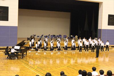 「零~0から1を創り出す~」をスローガンに、「ひとつの朝」と「COSMOS」を歌いました。素晴らしい合唱を会場いっぱいに響かせ、最高のハーモニーを聴衆に届けることができました。