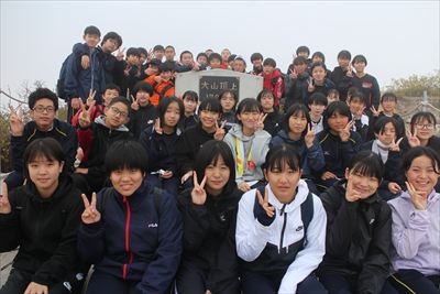 2年生が10月13日~16日に修学旅行に行きました。生徒自身が自立することを目標に、どの活動にも一生懸命に取り組みました。2日目の大山登山では、気力や体力の面でとても苦しい思いをした生徒も多かったですが、班のみんなで声をかけ合い、最後まであきらめずに全員が登頂できました。3日目の松江自主研修では、遅刻や怪我もなく、全員が楽しみながら有意義な時間を過ごすことができました。