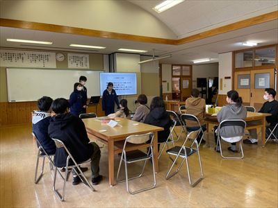 学年ごとに、今年度の総合で学習したことを発表しました。1年生は都万の魅力について、2年生は海ごみの活用、地元の食材を使用したラーメン作りについて、3年生はICT、リゾート化計画、ジオゲートウェイについて発表しました。隠岐のよさや課題に目をあて、ふるさとの現状、そして将来を考える良い機会となりました。