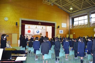 3月18日、卒業式が行われ、卒業生の晴れの門出を祝いました。コロナ禍のため時間短縮で行いましたが、感動的な式になりました。卒業生、卒業と進学、おめでとうございます。