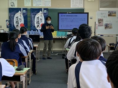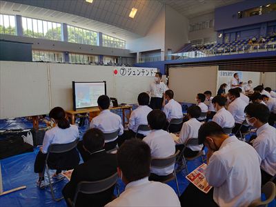 西郷南中学校の重点指導目標の一つがキャリア教育です。先の予想しづらい社会だからこそ、様々な大人と出会い、体験し、自分の生き方についてしっかり考えていくことが必要と考えています。1年生は「南中ミニジョブフェア」を開き、島内9事業所の方々に仕事内容の説明から、働くことの意義までたくさんのお話をしていただきました。2年生は「隠岐の島町ジョブフェア」に参加し、30以上の事業所から自分で興味のある職種を選び、説明を受けました。3年生は地元農家の村上さん、布施で海女をしている天野さん、NPO法人隠岐しおさいの岡田さんなど各方面で活躍されている方々を招いてお話を聞きました。第2保育所の園児たちとの交流や高校等説明会などもあり生徒は自分の視野を広げることのできた1学期だったと思います。2学期は体験学習も交えながら、さらにキャリア教育を進めていきます。