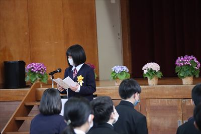 4月11日、35名の新入生を迎え、令和4年度がスタートしました。今年度は3年生2学級(36名)、2年生1学級(24名)、1年生3学級の全校生徒計95名となります。