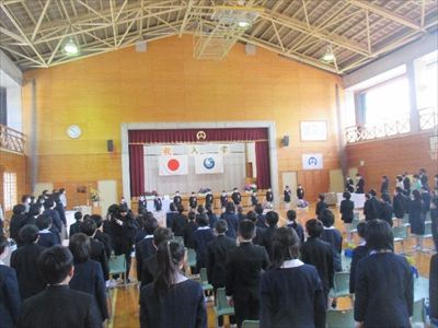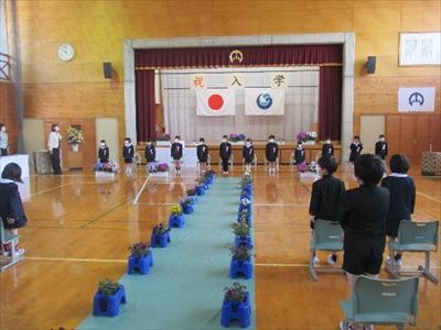 4月16日に入学式が執り行われました。入学式の朝、緊張顔で教室に入り、自分のロッカーや机を探す1年生。入学式の事前練習も上手に行いました。