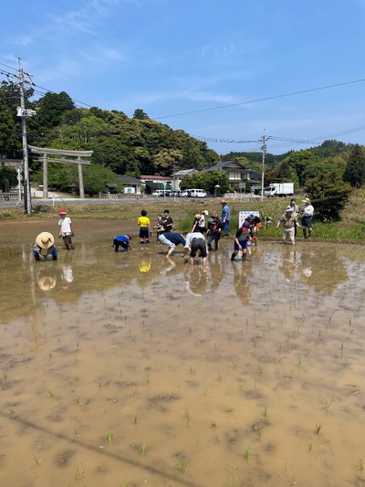 5月25日、5年生は総合的な学習の時間に、ふるさと学習の一環として田植え体験を行いました。今年も下西八百杉会の皆さんにお世話になり、田植えのやり方を丁寧に教えていただきました。また、今年度は下西保育所の年長さんと保小交流活動として一緒に田植えを行いました。