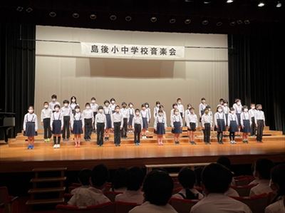 コロナ禍により3年ぶりに開催された島後小中学校音楽会。本校は3~6年生が参加しました。目標は「心をひとつに、自分も聴いている人も感動する合唱をしよう」でした。はじめは互いのパートにつられることがありましたが、練習を重ねるに連れて各パートの声が少しずつまとまり、きれいなハーモニーが響くようになりました。本番では緊張する様子も見られましたが、ステージに立つと真剣な表情になり、自分を支えてくれるかけがえのない人を想い、言葉を大切に優しい気持ちで「変わらないもの」を歌いました。音楽会の練習や本番で学んだことを大切に、これからも音楽を楽しんでほしいです。
