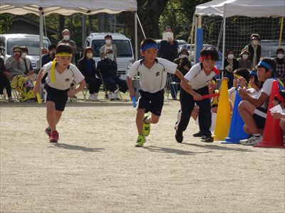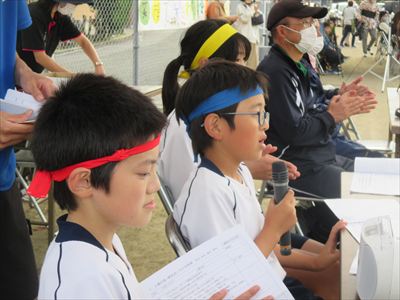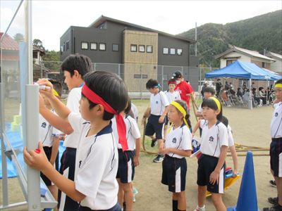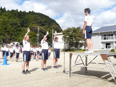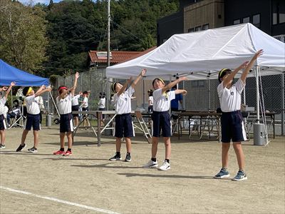 5・6年生執行部が中心となり企画・準備をした運動会。1年生がポスター作り、2年生はスローガン横断幕作り、3年生はラジオ体操、そして4年生以上は各委員会に分かれて用具、放送、記録などの役割を担当し、全校児童が自分たちで作り上げる手作りの運動会として実施することができました。当日は天候に恵まれ、たくさんの保護者・地域の方に応援していただくことができました。みんなの力を結集して、今年のスローガンである「みんなが全力でがんばり、笑顔で終われる会にしよう!」が達成できました。