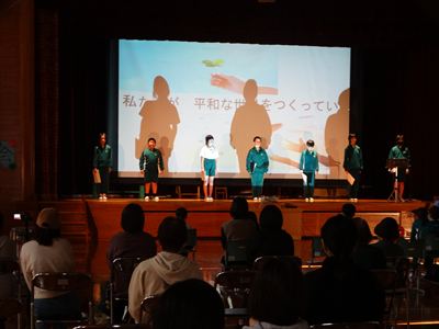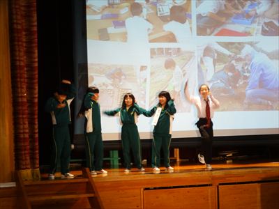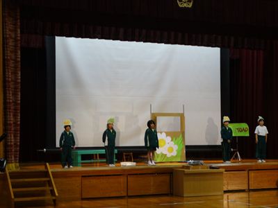 11月10日に、きたっこ発表会を行いました。オープニングは、毎年恒例となっている「きたっこ太鼓」。3・4年生の発表は、「ハマナス」。総合的な学習の時間に、隠岐ジオパークの方や公民館・地域の方と行った活動や調べた事をニュース風に発表しました。2年生の発表は、「お手紙」の音読劇。2年生が、かえるくんやがまくんやかたつむりくんになりきり、気持ちの伝わる音読劇でした。5・6年生の発表は、「平和学習」。修学旅行を通して、戦争・平和についてさらに強く思いをもった5・6年生は、一人一人が課題を持ち調べたことを発表しました。
