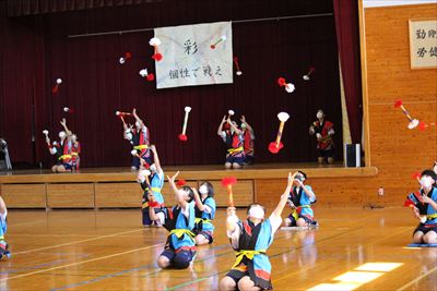 「彩」をスローガンに、午前中は銭太鼓、出店、午後からは体育祭が実施されました。短い準備期間の中、全員で協力して、できることを自分たちで考え、精一杯楽しむことができました。