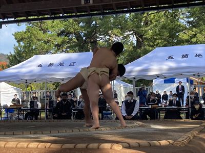 11月13日に五箇地区相撲大会が開催されました。3年ぶりに小学生は例年通りの参加となり、たくさんの児童が土俵上で熱戦を繰り広げました。相撲で育てる五箇地区の伝統が復活し、子供たちの頑張りから元気をいっぱいもらいました。