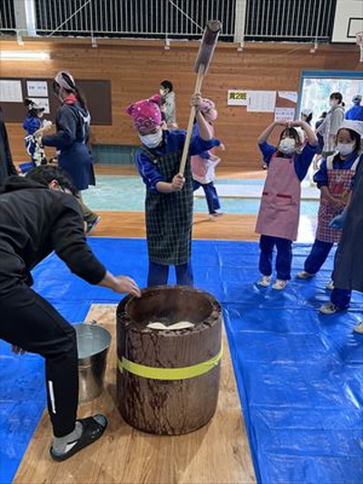 5・6五年生が収穫した餅米を使って、PTA餅つき大会が行われました。久しぶりの開催でしたが、スムーズに作業が進められ、楽しいひとときを過ごすことができました。コロナ禍のため、ついたお餅はお家に持ち帰ってもらいましたが、おいしかったという感想がたくさん寄せられました。