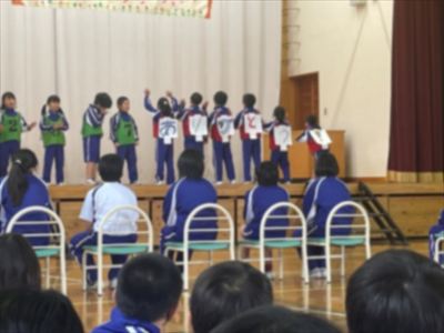 当日は、各学年の工夫を凝らした楽しい出し物やゲームでとても盛り上がりました。そして、6年間の思い出写真のスライドショーでは、元担任の先生方からのお手紙もあり、思い出に浸る時間もありました。楽しさもあり感動もあり、みんなが6年生のことを大好きなことが伝わる温かいおくる会となりました。
