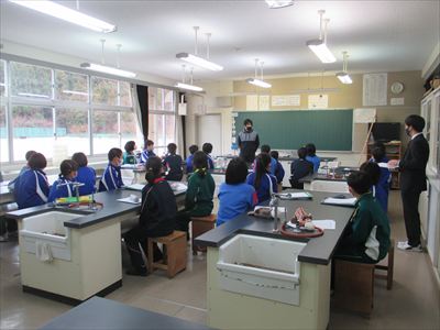 2月10日に西郷南中学校一日入学があり、5つの小学校の児童が参加しました。中学校生活への希望に満ちた児童がほとんどだとは思いますが、中には不安を抱えた児童もいると思います。このため、西郷南中の一日入学では毎年、「体験授業(理科・英語)」を計画し、他校の児童同士が交流しながら中学校の先生の授業を受ける機会を設けています。今年も、はじめは緊張していた6年生たちが少しずつ柔らかな表情になっていきました。新生徒会四役が先輩らしく堂々と学校説明を行い、とても頼もしく感じました。来年度に向け、期待が膨らむ一日となりました。