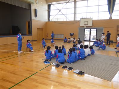 4月に「1年生と仲よくなる会」を行いました。5・6年生児童が中心となり、インタビューや1年生クイズ、ゲームを行いました。少し緊張気味の1年生も活動が進むにつれて笑顔になり、楽しい時間をすごすことができました。