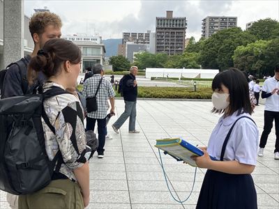 また、海外からの観光客の方に、外国語の学習を活かしてインタビューを行い、お礼に英語版隠岐の島パンフレットをプレゼントしました。
