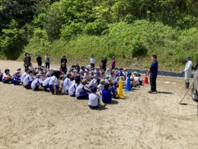 毎年磯小学校ではサツマイモを初夏に植えて秋に収穫をしています。子どもたちはたて割班ごとに分かれて芋苗を植えました。高学年児童は低学年児童に教えたり、みんなで水をあげたりして磯小学校の一体感を感じることができました。芋が成長するように水やり当番も決めて、みんなで育てていきます。収穫が楽しみです。