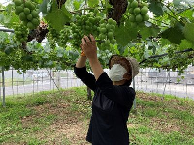 磯小学校の校区内で農家をされている「山形屋」さんに協力を依頼し、ぶどうハウスの見学に行きました。日頃子どもたちが感じている疑問など、様々な質問をし、おいしいぶどうができるまでの農家の方々の苦労や努力、工夫を体感することができました。