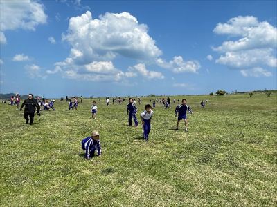 5月1日、晴天の中、全校たて割りで春の遠足が行われました。場所は隠岐空港です。