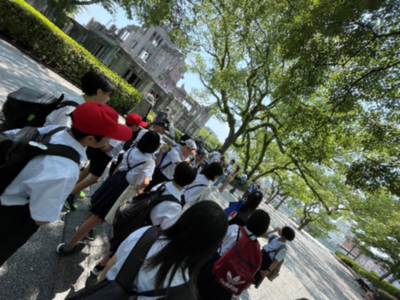 6年生は、6月13日から2泊3日で広島へ修学旅行に出かけました。修学旅行では、学校で練習してきたマナーや、集団行動の規律を守ろうとする姿がたくさんみられました。それぞれの行先で、隠岐の島との違いを感じて、子どもたちの豊かな学びにつなげる事ができました。修学旅行から帰ってきたあとも、みんなが楽しく過ごすために大切なことを意識しようとする場面が多く見られました。修学旅行をただの思い出作りとするのではなく、学んできたことを普段の生活に活かそうとする子どもたちに感心しました。