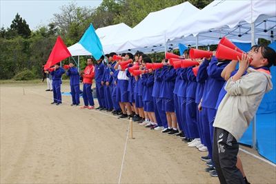 全員が1種目以上にエントリーし、全校体制で大会に臨みました。残念ながら大会途中で雨天中止となりましたが、代替案として後日校内記録会を行いました。全選手が自身の競技に全力を注いだり、一丸となった応援を響かせたりと、とても盛り上がる大会となりました。