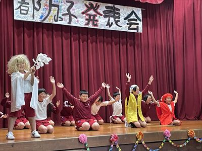 1年生は、国語の「大きなかぶ」の劇で、自分たちで考えた都万小オリジナルストーリーも加え楽しく可愛い発表をしました。